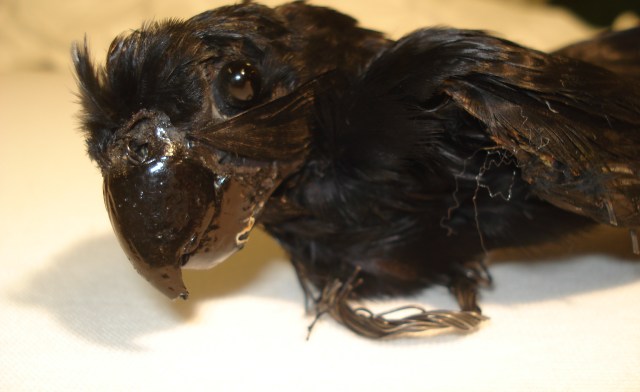 A closer look at the three dyed-black millinery prepared parrot specimens in the University of Alberta Clothing and Textiles Collection.