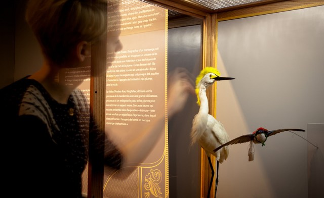 Click on the link to view a set of photographs documenting the installation of Fashioning Feathers at the Royal Alberta Museum taken by Andriko Lozowy: