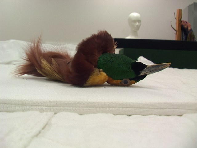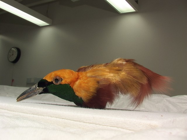 Lesser Bird of Paradise (Paradisaea minor) millinery prepared specimen with mating plumes. UACTC. Photo: Merle Patchett