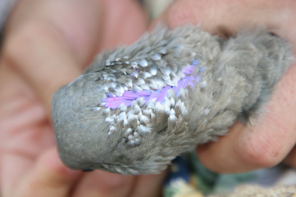 Example of bowerbird nuchal crest. Photo © Perdita Phillips. Photograph taken at Broom Bird Observatory during a bird-banding project.